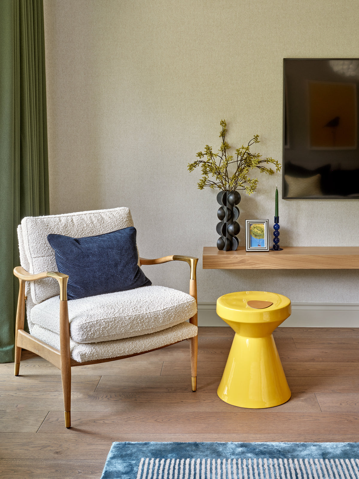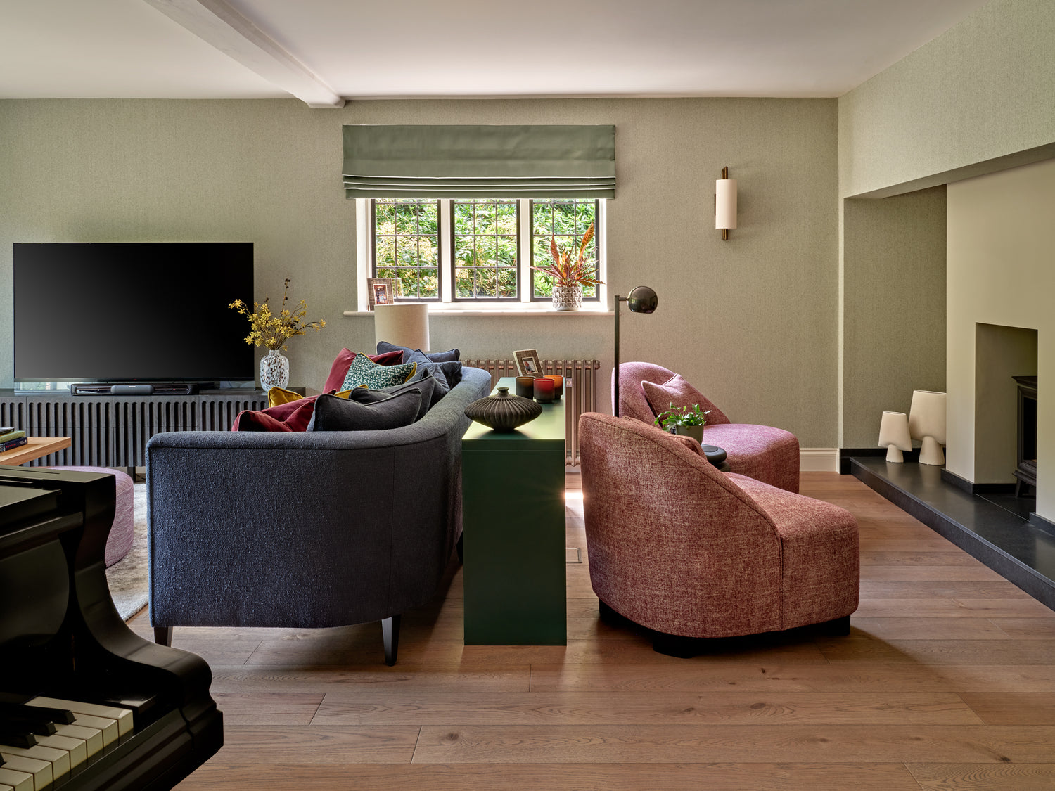 “Working with a full construction team, we respected the period details of this property while introducing complementary bespoke pieces. The open-plan kitchen and dining areas are perfect for entertaining, and Kirsty loves spending time with her daughter in the sunny sitting room – either knitting or watching TV”.