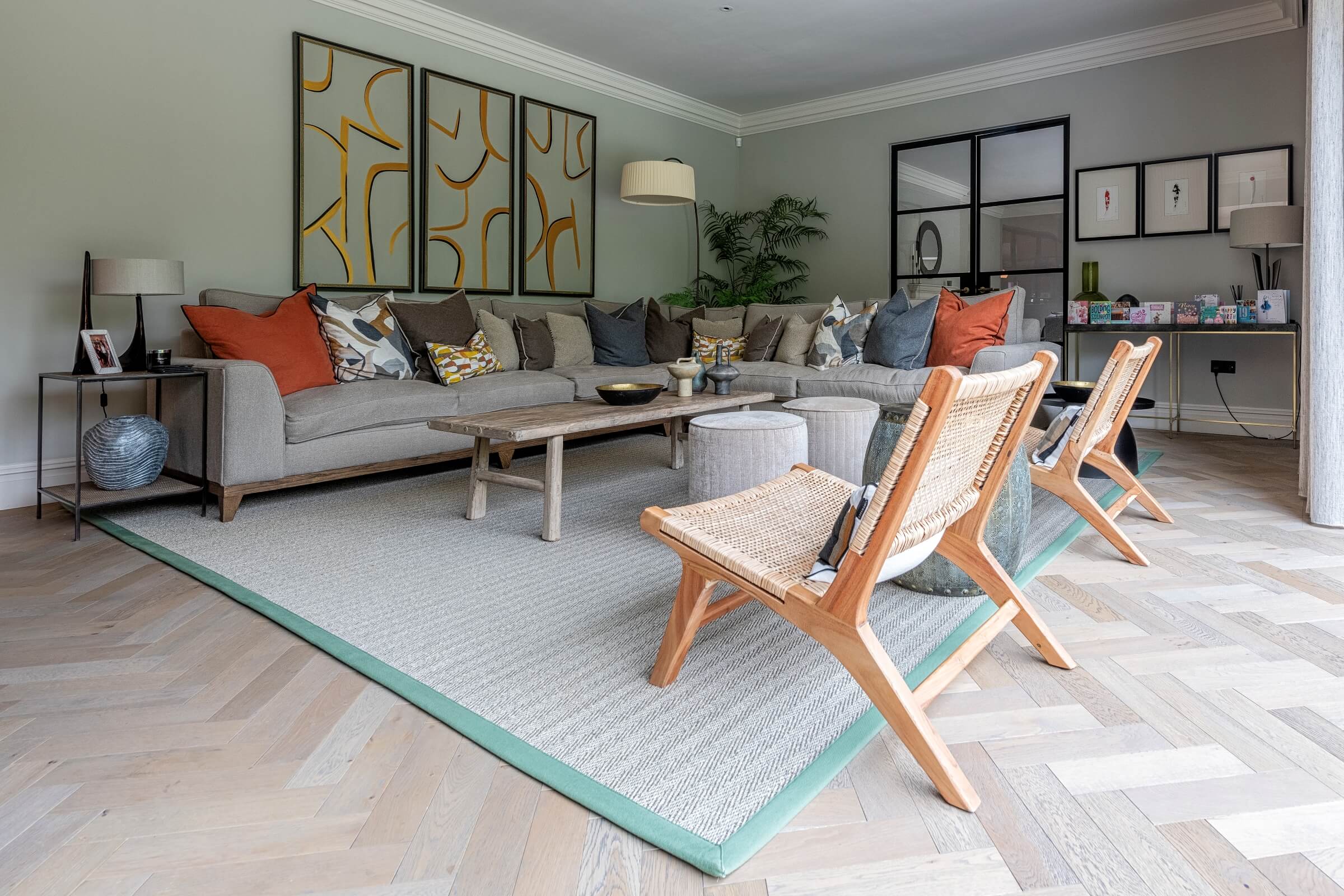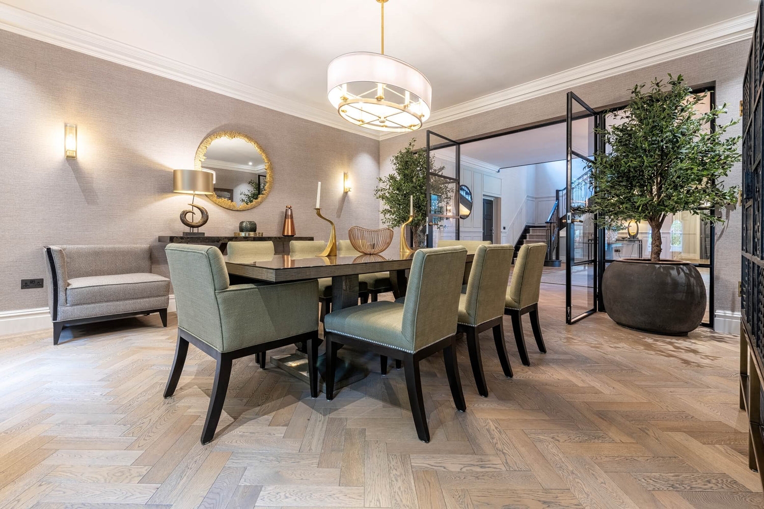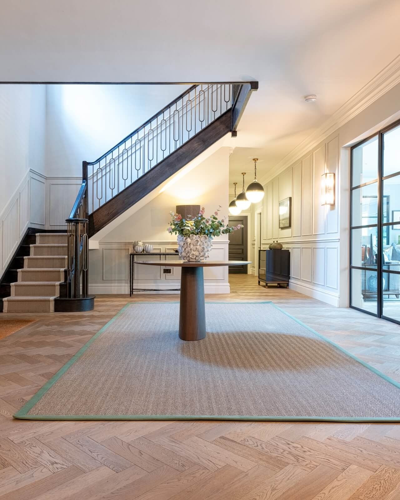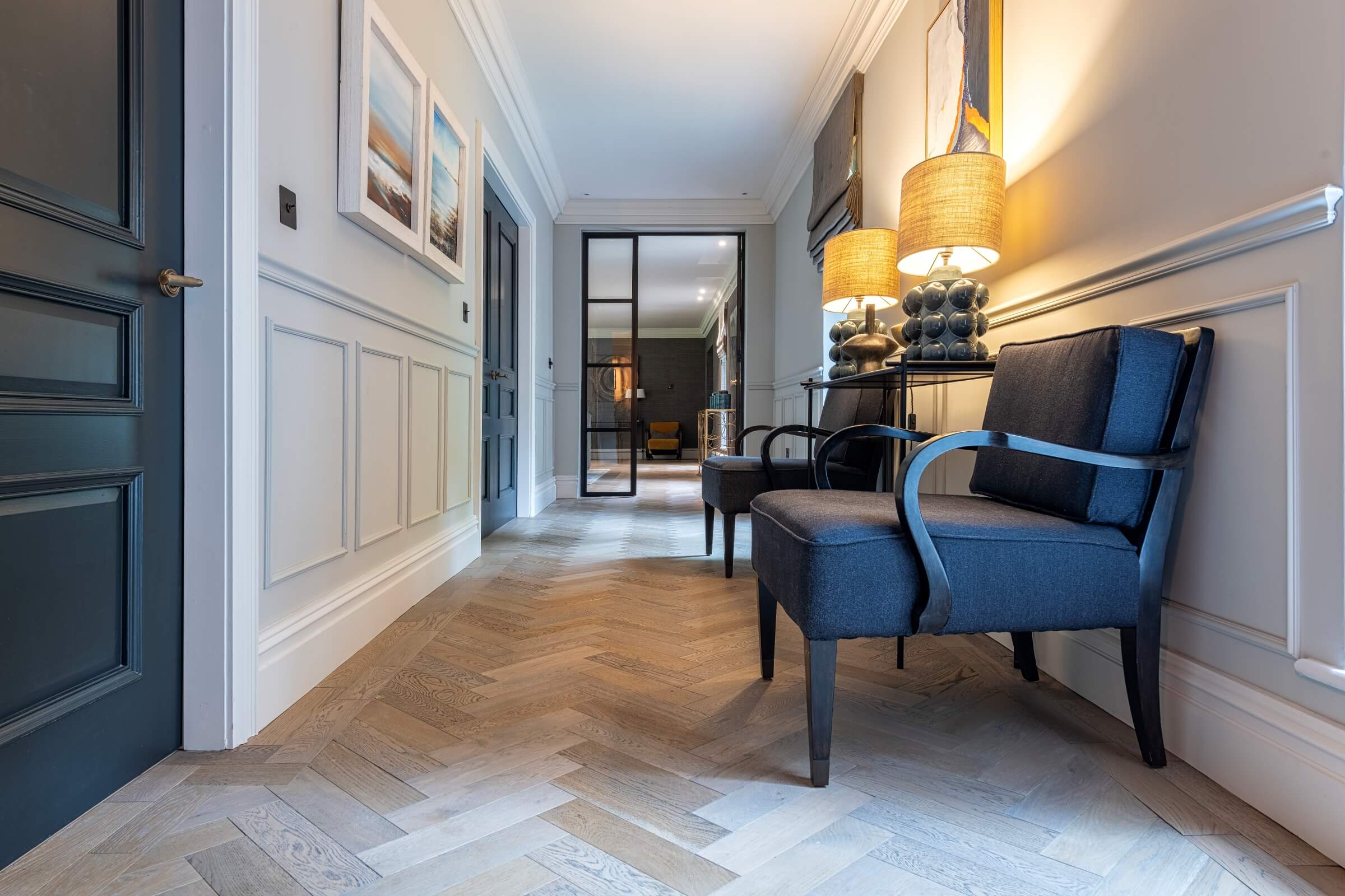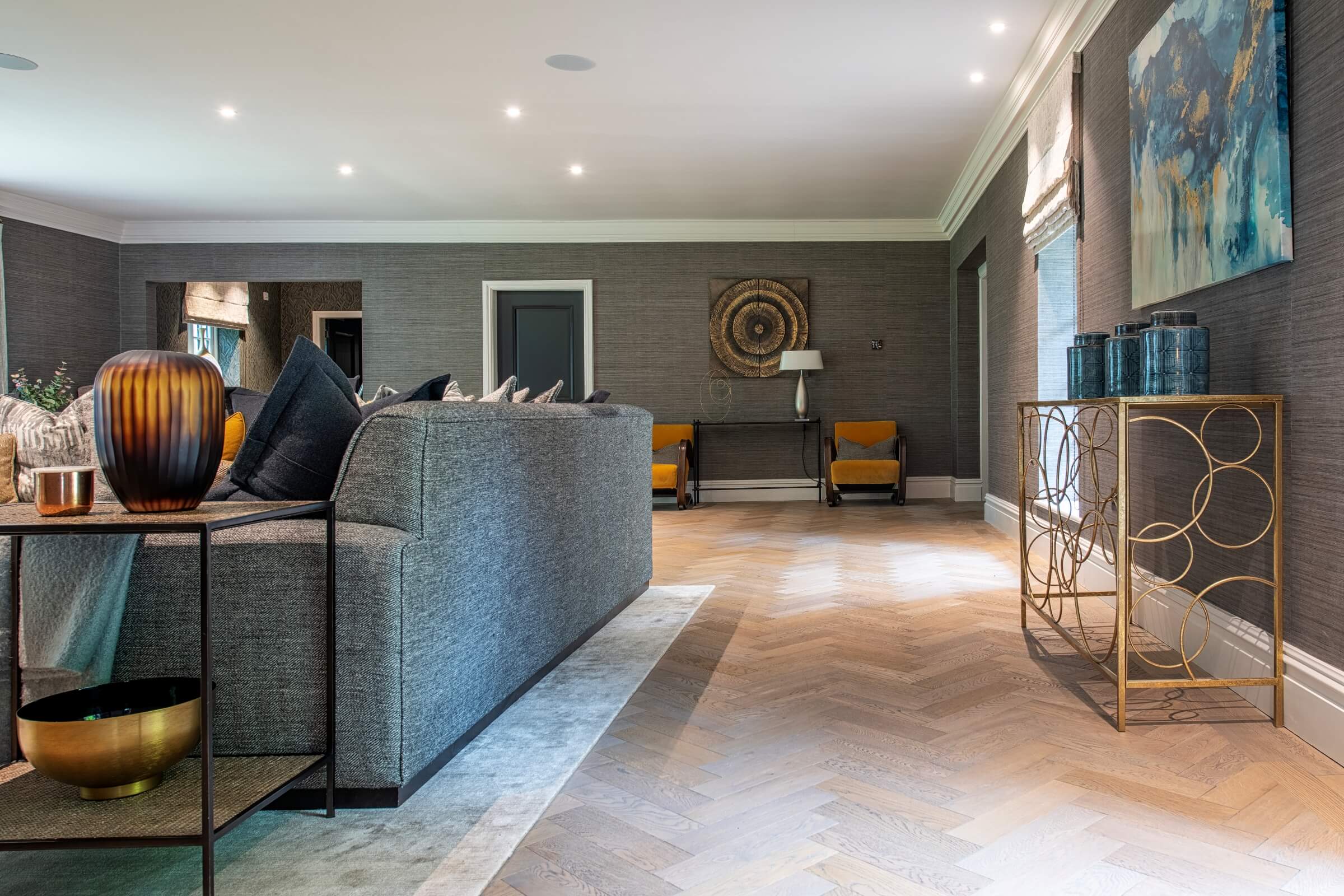 This impressive country house in the picturesque village of Harmston, Lincolnshire has been completely modernised by its new owners, who selected our Deco Frozen Umber herringbone to create a uniform floor finish flowing through the principal living spaces.