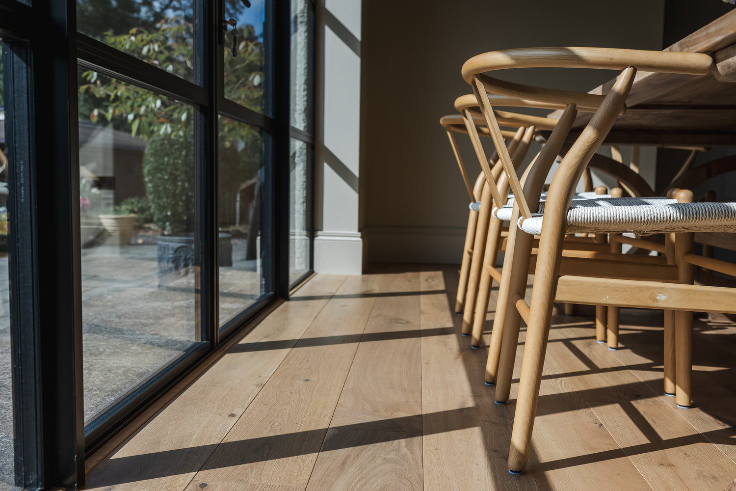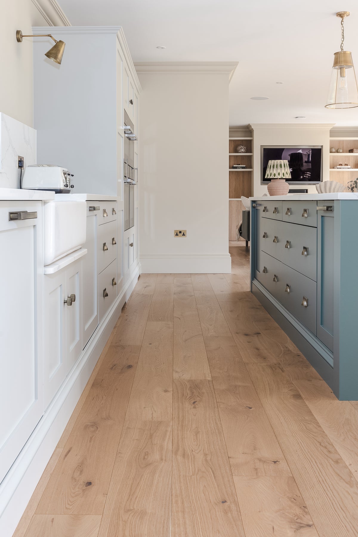 Running through both living rooms, along with the kitchen-come-dining room and larder, the client created a consistent design that added warmth to their home.