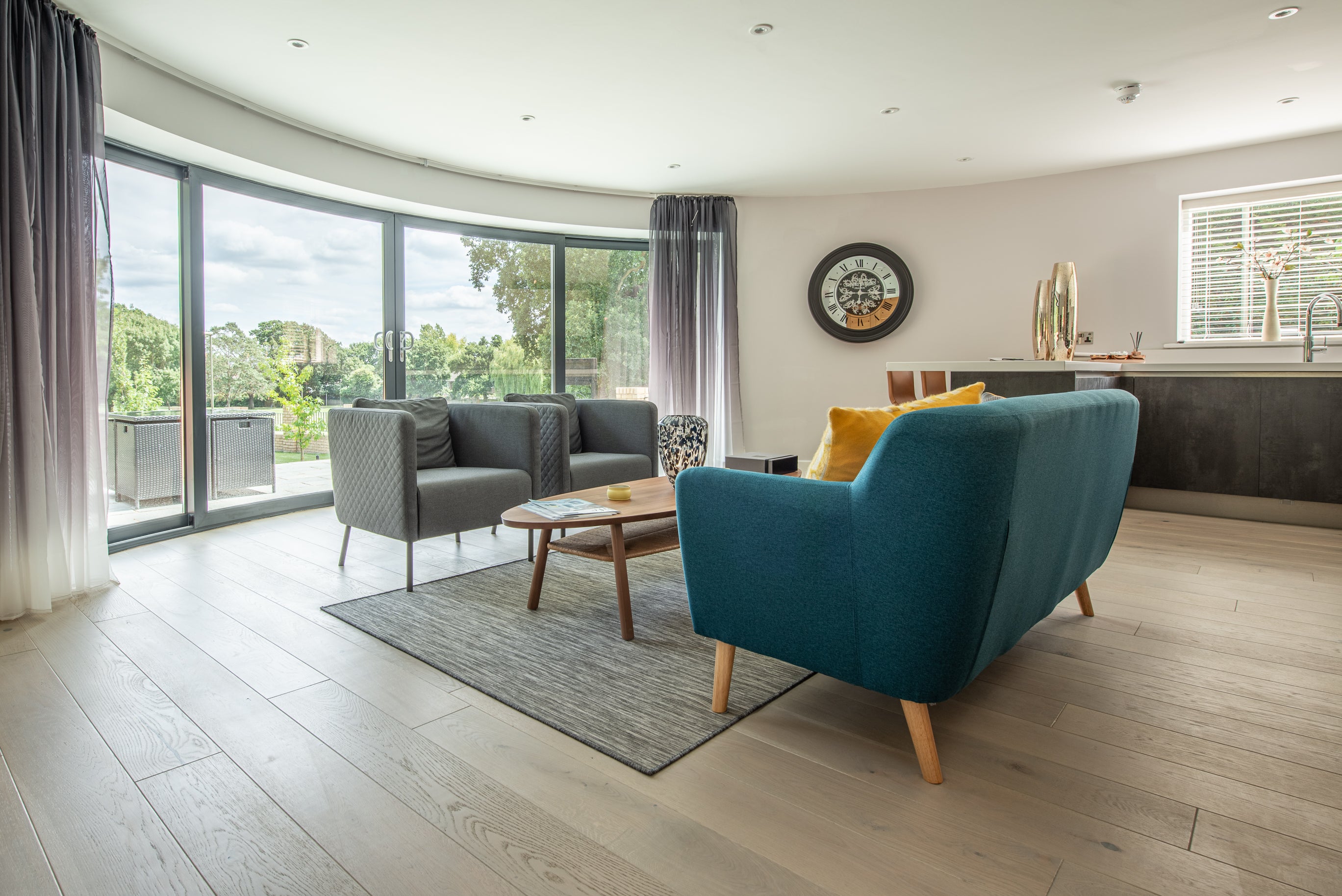 "All of the apartments centre around a generous opening plan living space with large windows and patio doors flooding the rooms with plenty of natural light and providing beautiful views out to private terraces and the surrounding green landscape. I pretty much completed the install single-handedly. Each apartment took around two days. The wood floors were going over underfloor heating and I used the Woods Good Eco Gold underlay, made from recycled car tyres, which is designed to support and cushion the flooring and the gold foil vapour barrier protects against the possibility of rising moisture."
