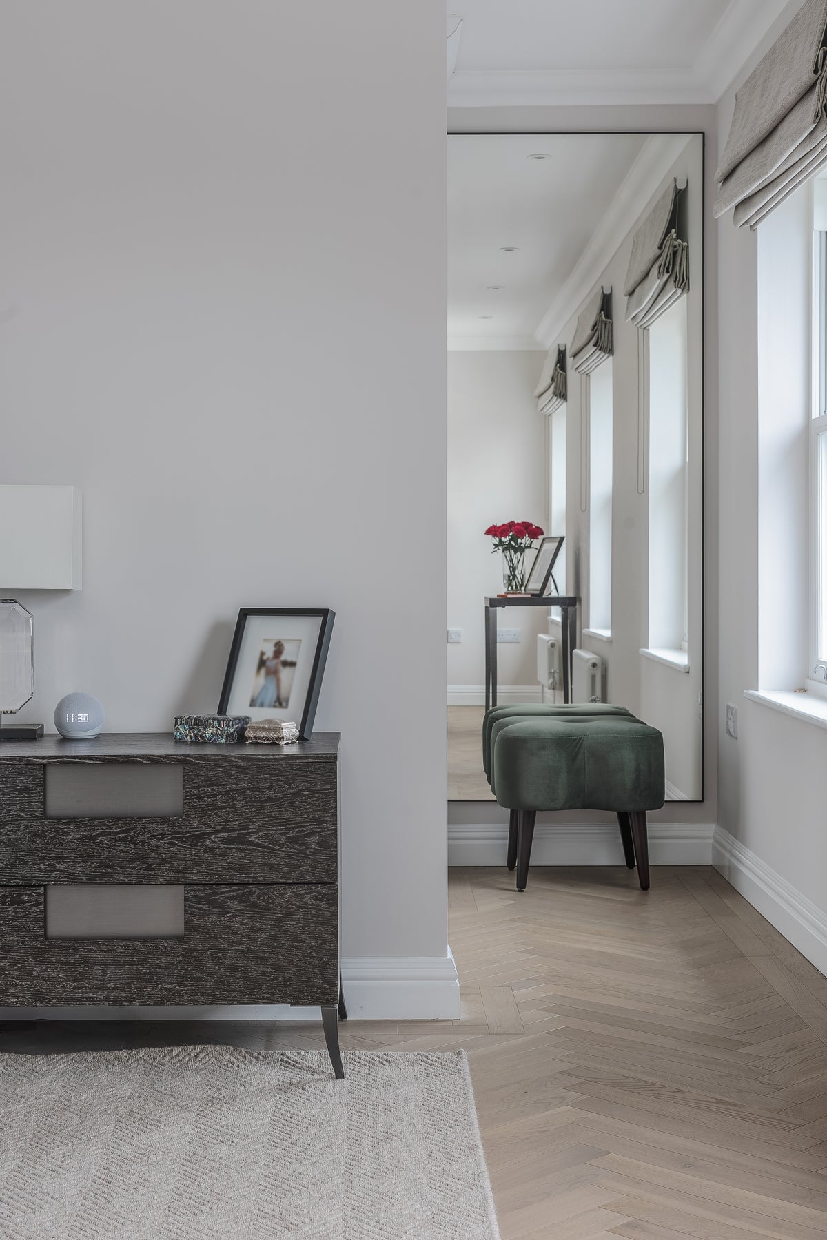 From an interior design perspective, the herringbone pattern is said to elongate a room visually by guiding the eye in a specific direction – with this in mind, we laid the v-pattern pointing towards the direction of the headboard in the master bedroom, thereby drawing the eye towards that central feature in the room. Unlike some other flooring trends, herringbone patterns have been used a lot in history, hopefully making it a design choice that’s less likely to appear dated in years to come.”