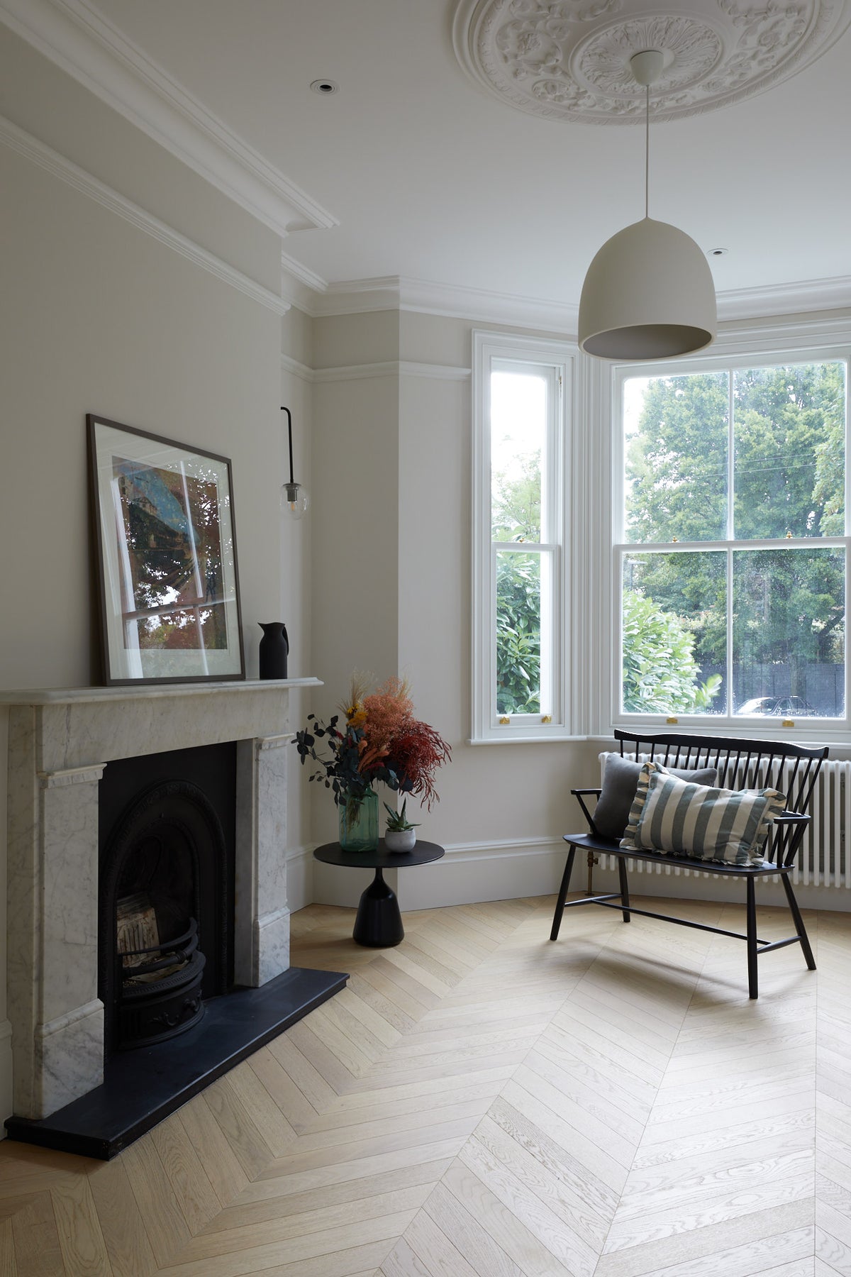 The lower ground floor was to be the hub of the home with sociable, yet functional, family spaces – not fully open plan, more broken plan and flexible for varied use as the family grows. The clients wanted a house they could be proud of and show off to their friends – they had really fallen out of love with it. That’s what the team delivered: 'We can't quite believe this is our house. It is just far beyond our expectations. We just can't thank you enough.' When it came to the flooring, Seashell Chevron was selected from our Tundra Collection.