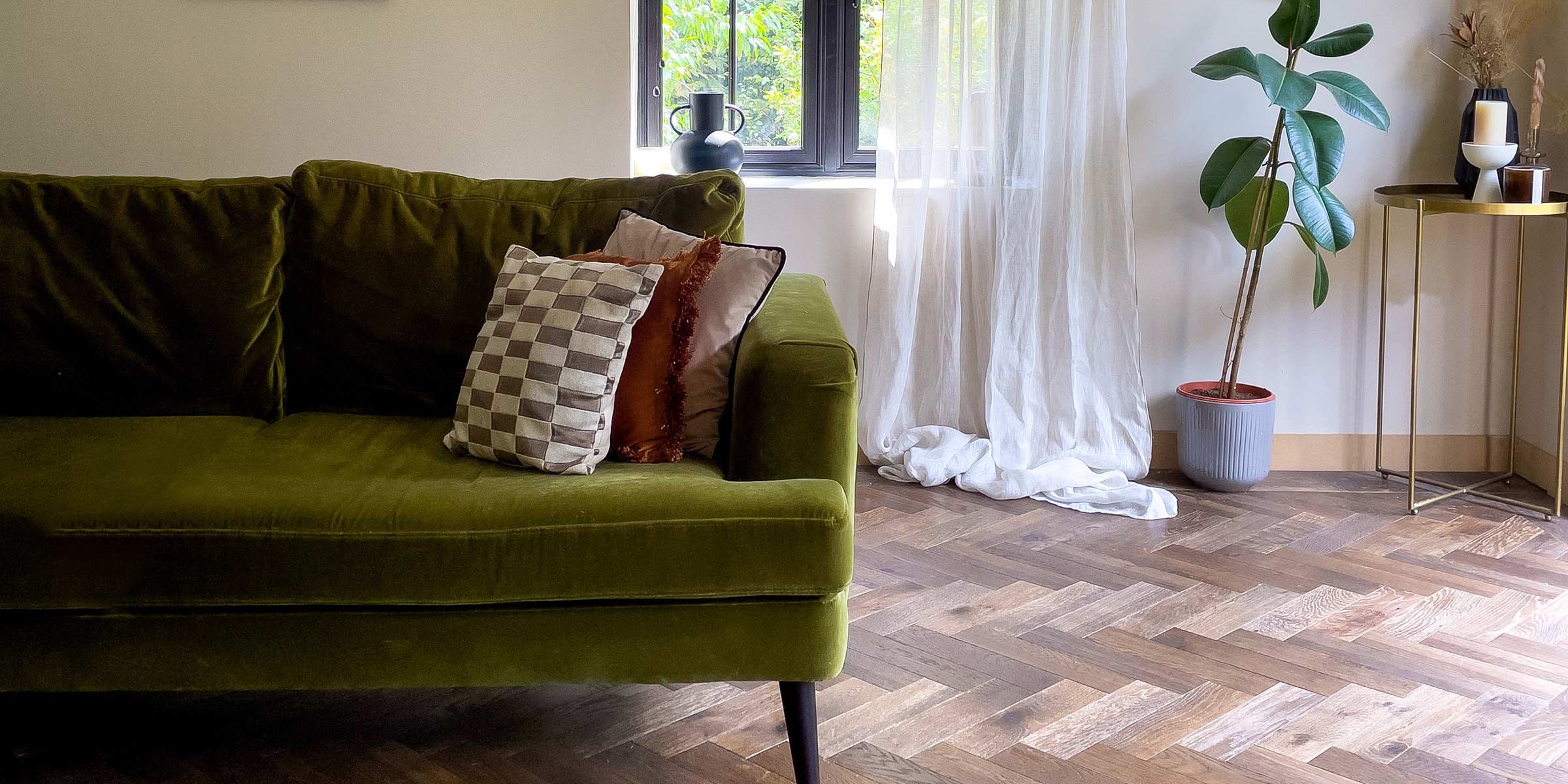 With Jim saying ‘it was the easiest laminated he’s laid’ our Natureffect collection is a perfect floor for your next DIY project. Sharon however continued to work on the interior design, explaining how the surrounding nature had inspired her design Some of the furniture came from our old house - I chose the moss green velvet sofas in the sitting room because I wanted them to tie in with the beautiful green view we have from the doors and windows on there and the colour works beautifully with the warm dark brown flooring and to further connect the inside with the exterior, and to add a little more light, Sharon explains how important the use of light was in this project: