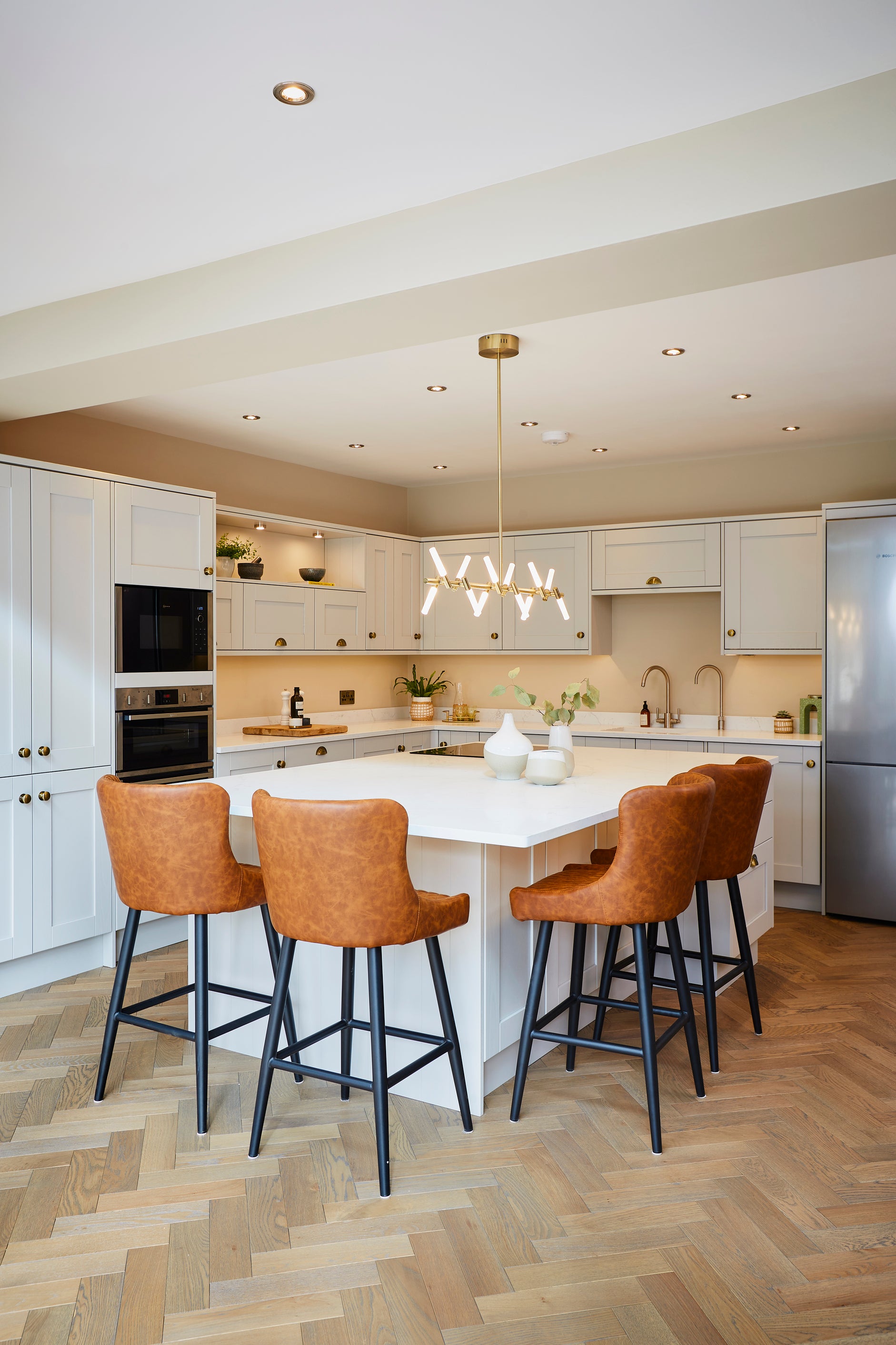 “The client wanted a neutral kitchen, and the main colour palette throughout the house to be neutral. We put forward a navy sofa, which the client fell in love with - so we pushed the design slightly more and chose two complimenting colours. It was a risk - but one that paid off as the client was over the moon with the end result!”.