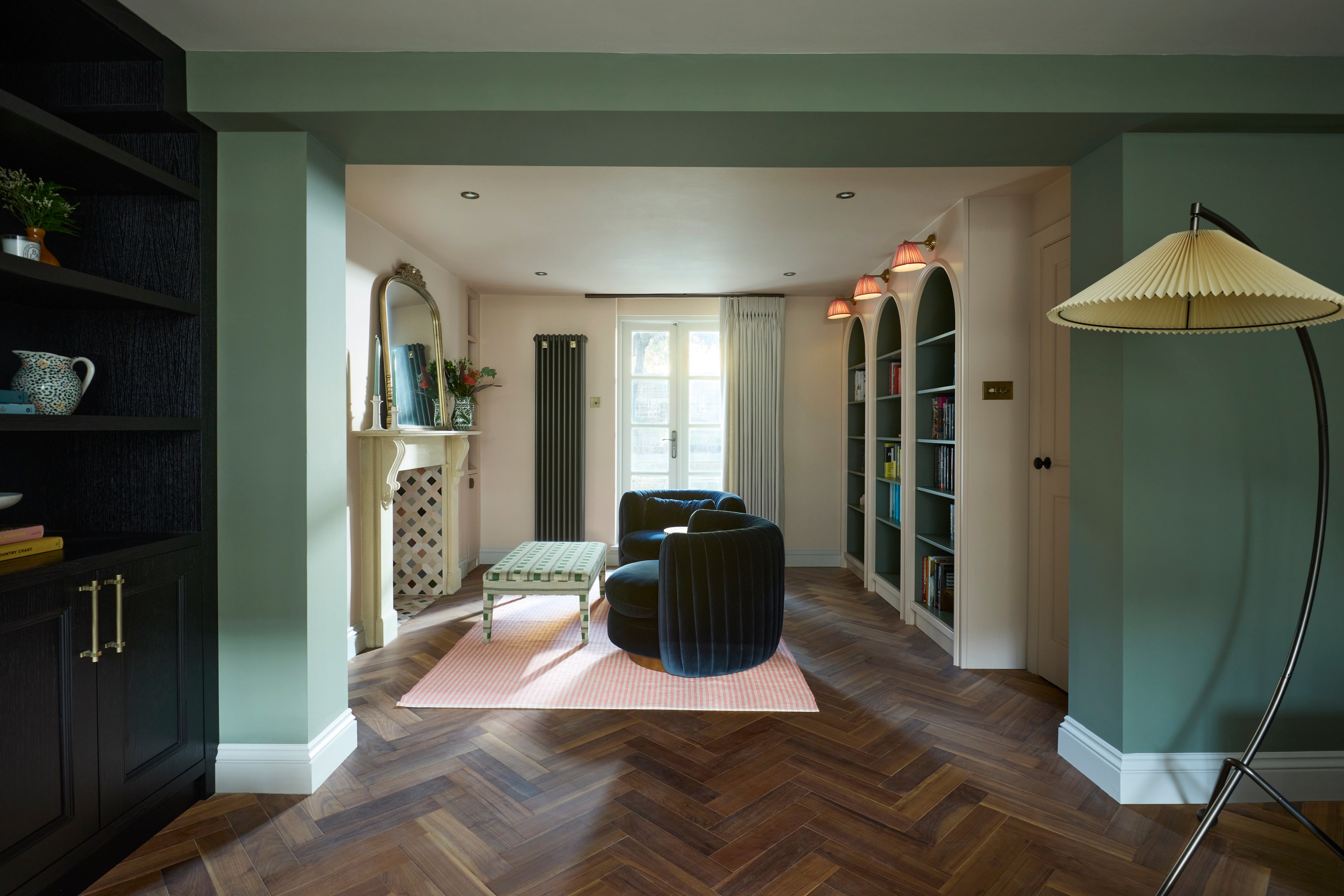 “We wanted to create a really cosy and relaxing atmosphere within the living room and reading space and we knew the walnut finish would be the perfect fit. We opted for the herringbone style to help create a lovely flow within the large space… It is a key design piece in the scheme and we think it creates the perfect backdrop for the rest of the design”.