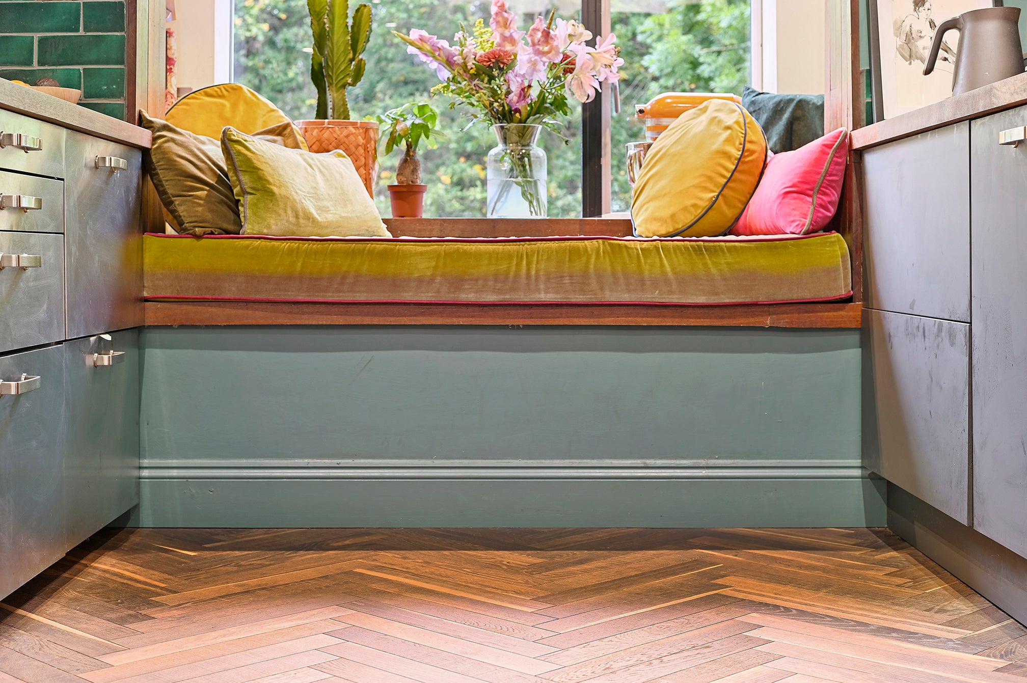One design feature that greatly adds to the homely and inviting décor is the window seat. With beautiful cushioning and a lovely view of the garden, Sarah explains how this last-minute plan became her favourite seat in the house.