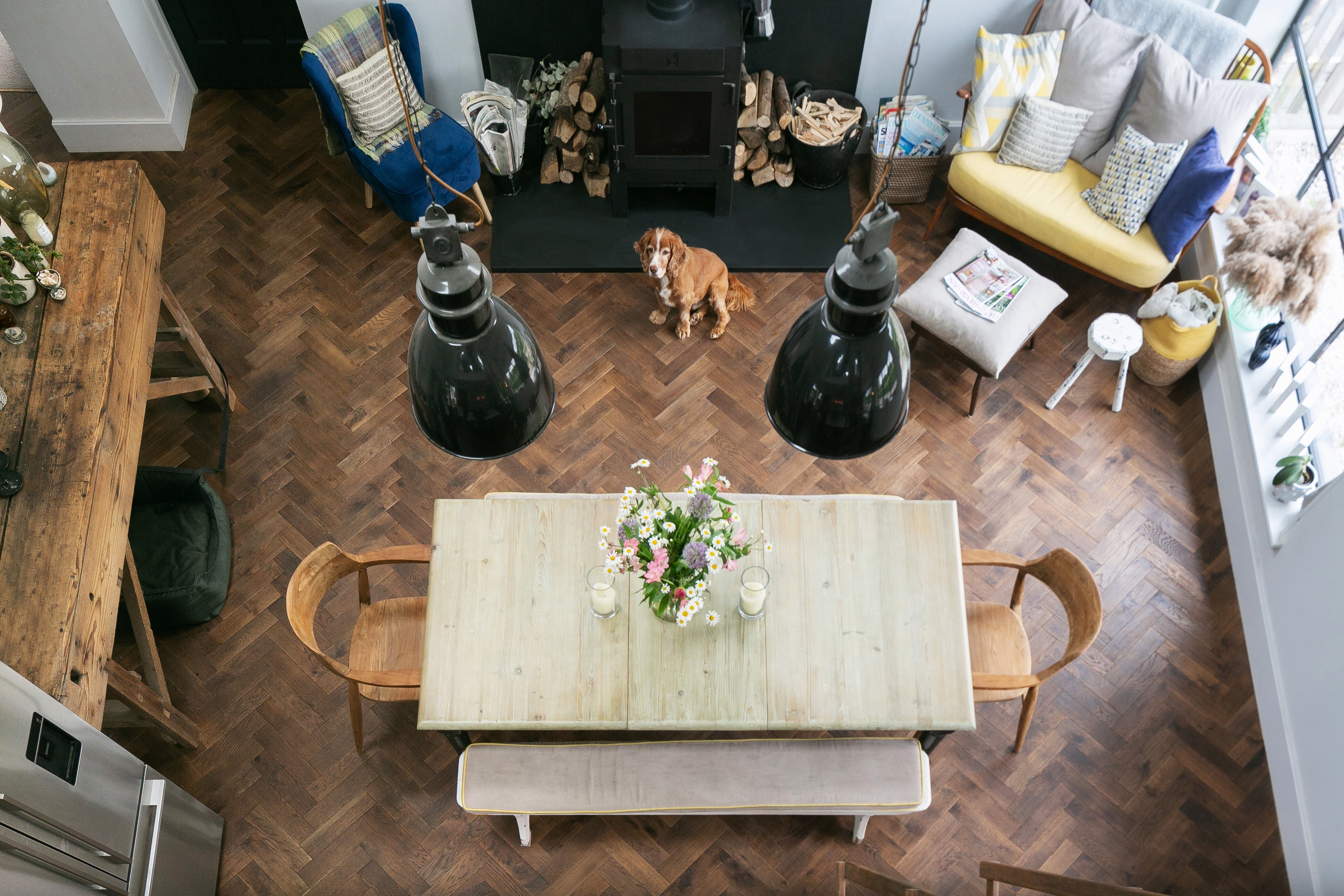 Amy ran her choice by her builders who would be installing the wood floors and they were quick to give them the go ahead too. Decision made, Amy ordered the floors from Source Wood Floors and the builders completed the install over the new underfloor heating system installed in the room. "The floors went down first and then as the kitchen, fireplace and everything else started to be fitted the room really started to come together and I was thrilled with how it was all looking."