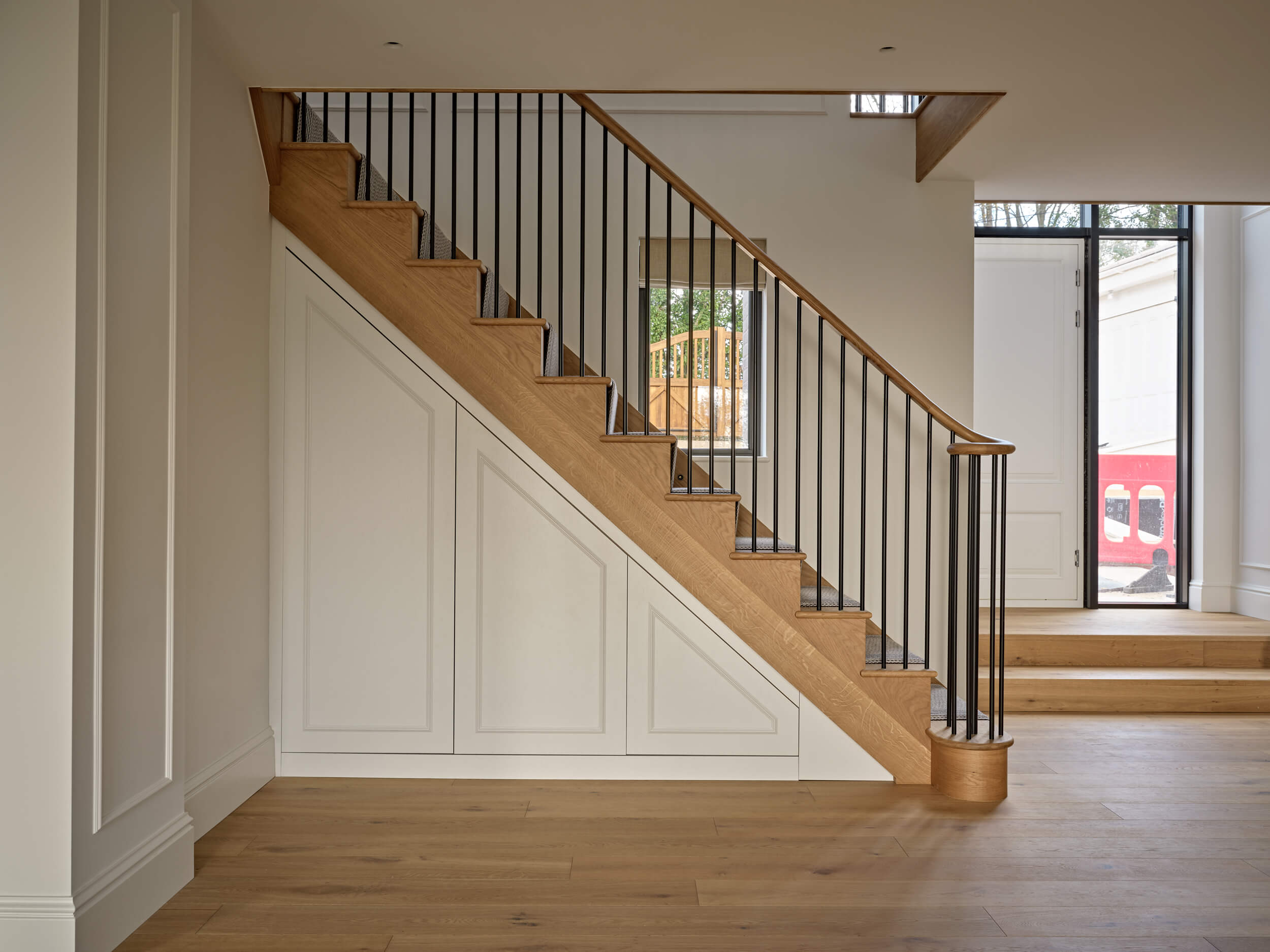 The generously sized oak planks flow seamlessly throughout the ground floor, enhancing the sense of space and creating a natural, intuitive flow between rooms.