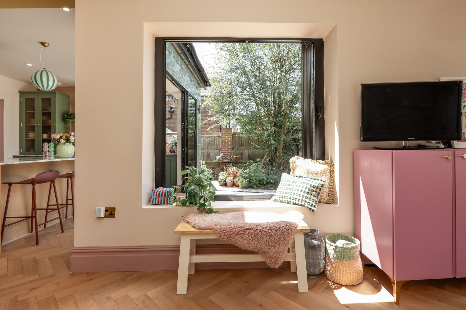 dressmaking, home styling and gardening. And it is this love of mixing colour and creative living that was at the heart of the design of the open plan kitchen, dining and living space in her own family home in London.