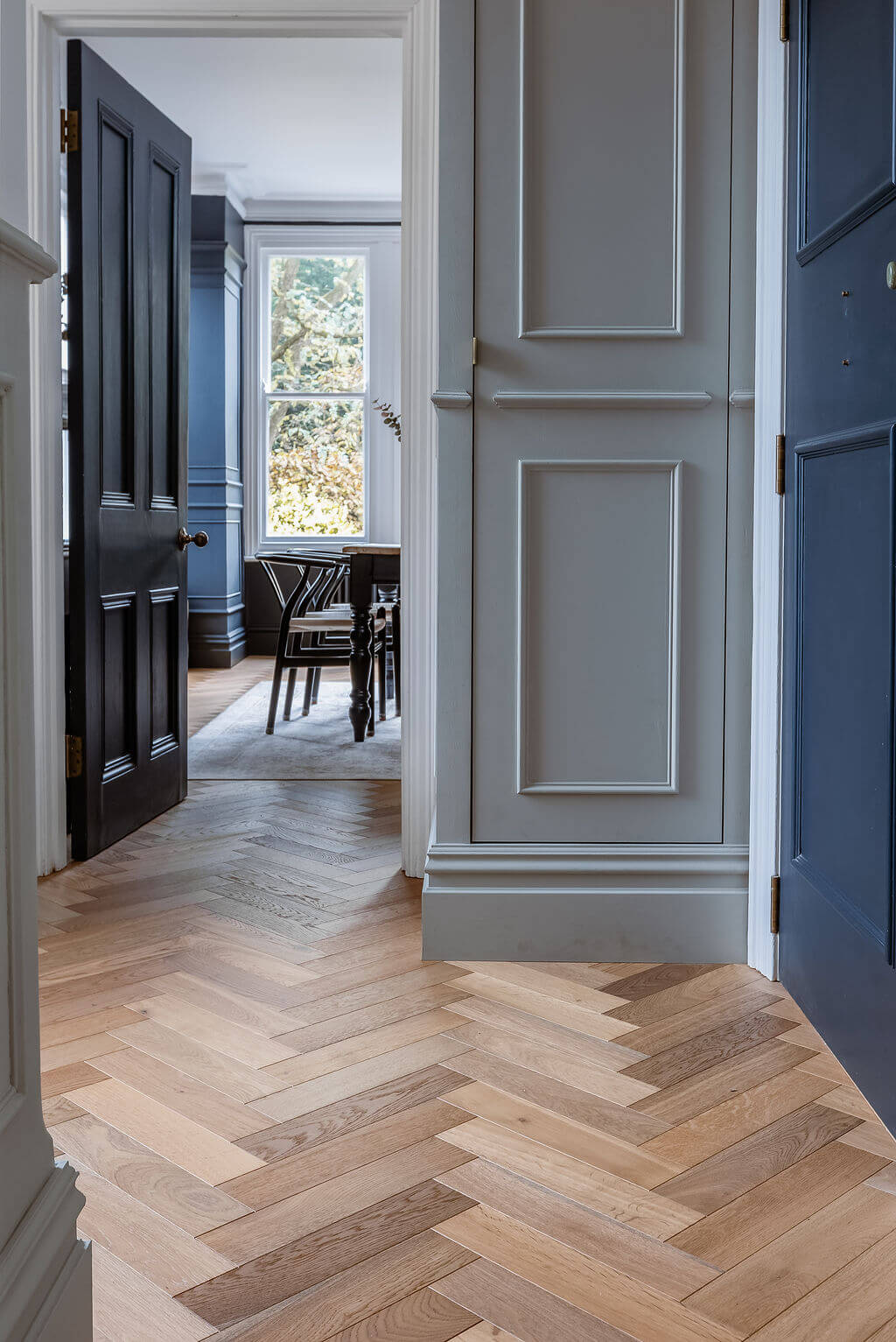 “I already had a herringbone pattern in mind. I especially wanted the entrance hallway to make an impression, and a herringbone layout gives that instant wow factor, and also with a nod to traditional Victorian flooring.”