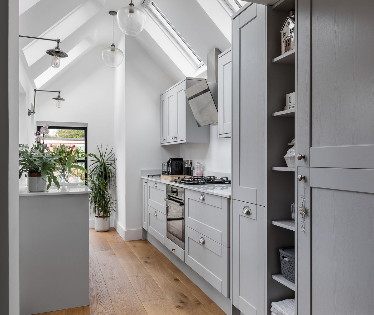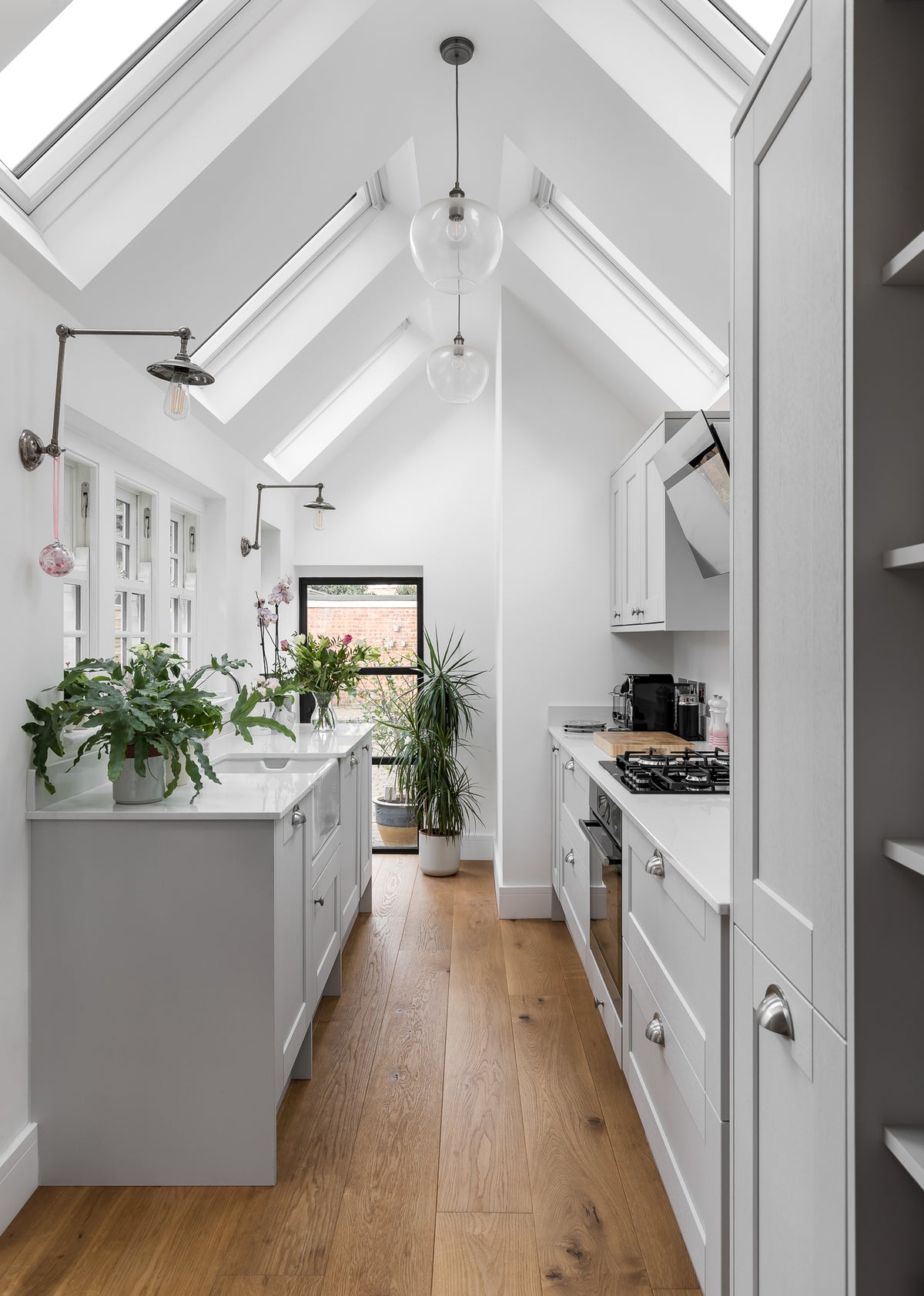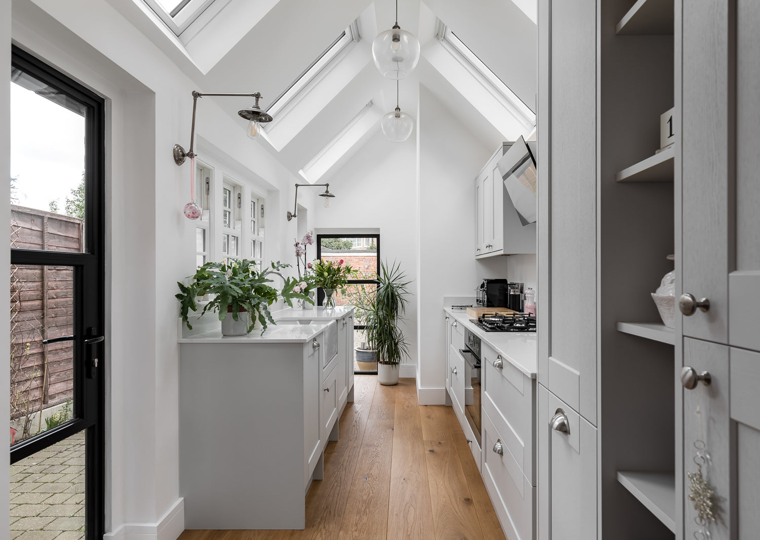 “This current project was a Victorian townhouse that was across three levels, with the original kitchen being very dark with very few windows. The main design brief was to create something much lighter and to open out the kitchen completely to get some more light in the back end of the house creating a bright and airy design. The back part of the room didn’t get much light, previously it had a lowered ceiling and the back part of the kitchen - which is now a doorway - was an outdoor toilet – as many Victorian properties were in that era. We broke through the roof, bolting the ceiling and opening it up. We installed 5 roof lights which completely transformed the space and used a nice light and airy pallet, including V4’s lovely flooring that has great depth and texture to it.”