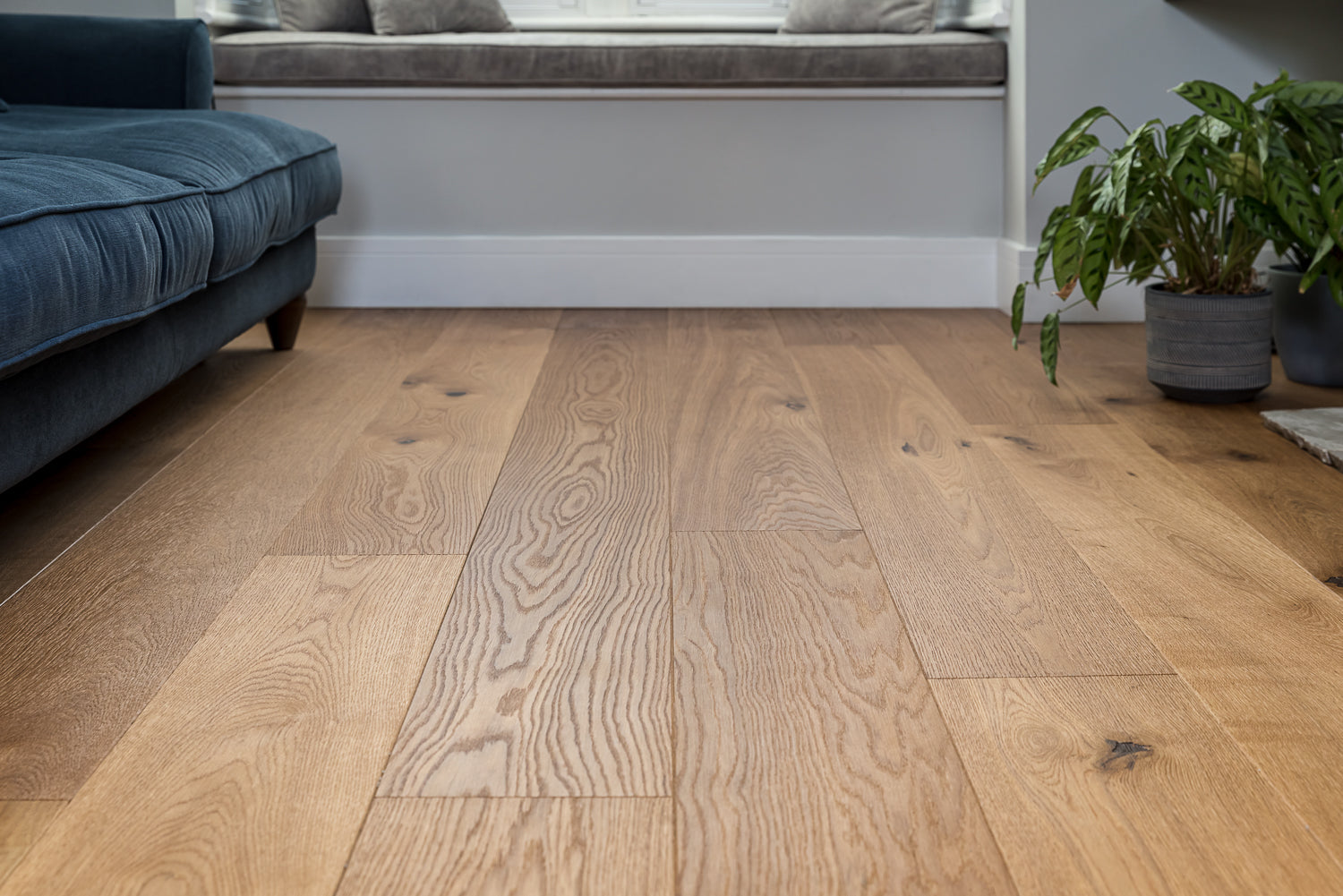 For this project, Christopher chose Natural Smoked, from our European Boutique Empires collection. This fantastic, engineered oak wood floor is given a deep brushing to create a tactile surface, enhancing the grain before being smoked to create the warm and inviting colour you can see in this installation. Not to mention, Natural Smoked is also PEFC certified, meaning that the timber used for this floor was responsibly sourced. One of the reasons that this floor was chosen for this project is because it would be located in high-traffic areas, meaning Christopher and his team wanted a floor that would be robust. Unique to this European Boutique Collection, the Empires range is complete with a deep brushing which provides a textured and hardwearing surface.