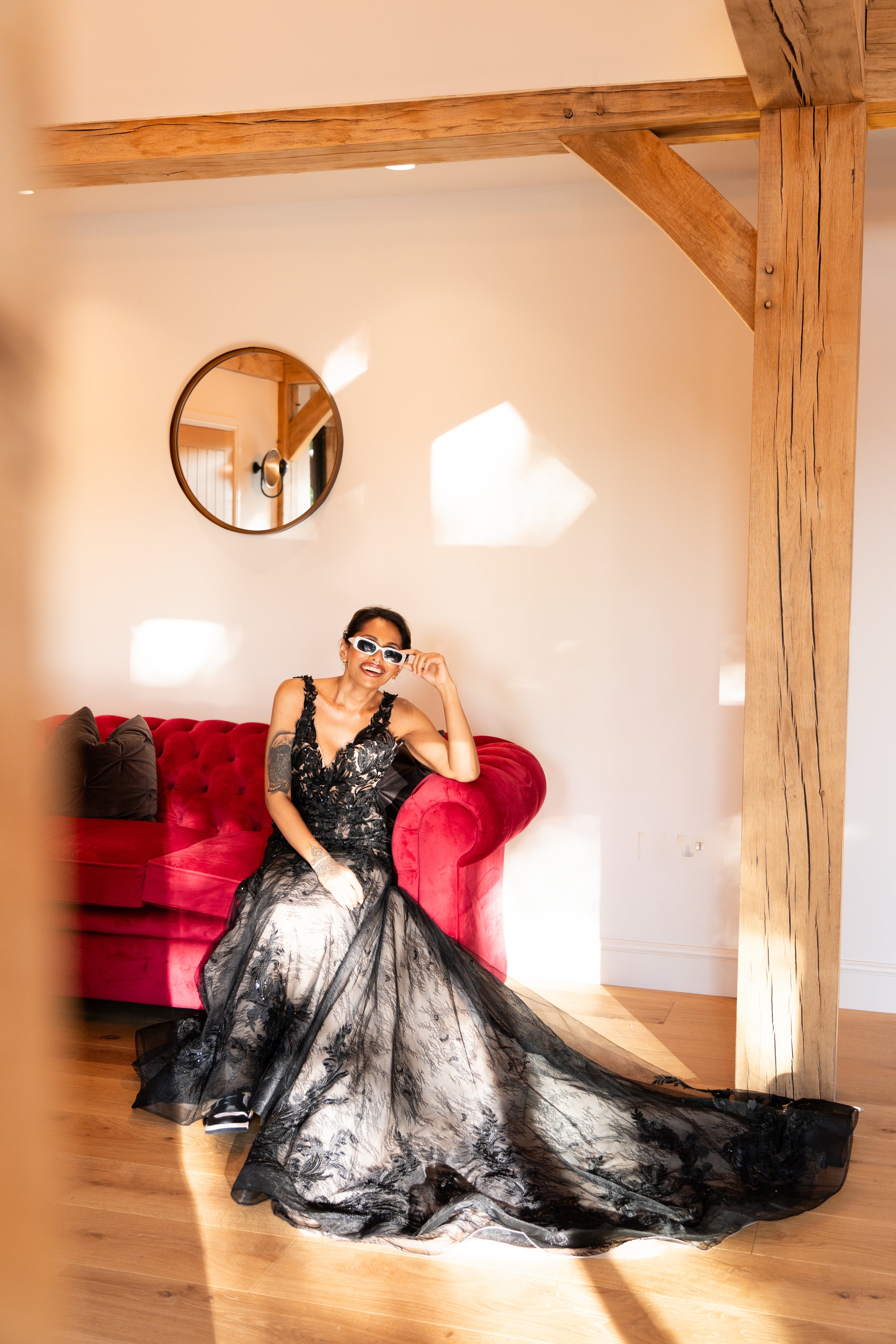 Alfriston Gardens is known best for its beautiful décor, marrying juxtaposing elements throughout the space, creating unique character and interest from every angle. Keeping the original architectural elements of the building, like the exposed beams and wood accents allows the space’s historic charm to shine through, the addition of floor-to-ceiling glass feature walls - allows the natural light to flood in and the stunning scenery to be admired from inside the barn, while the light, airy paint choices enhance the to the indoor/outdoor feel.