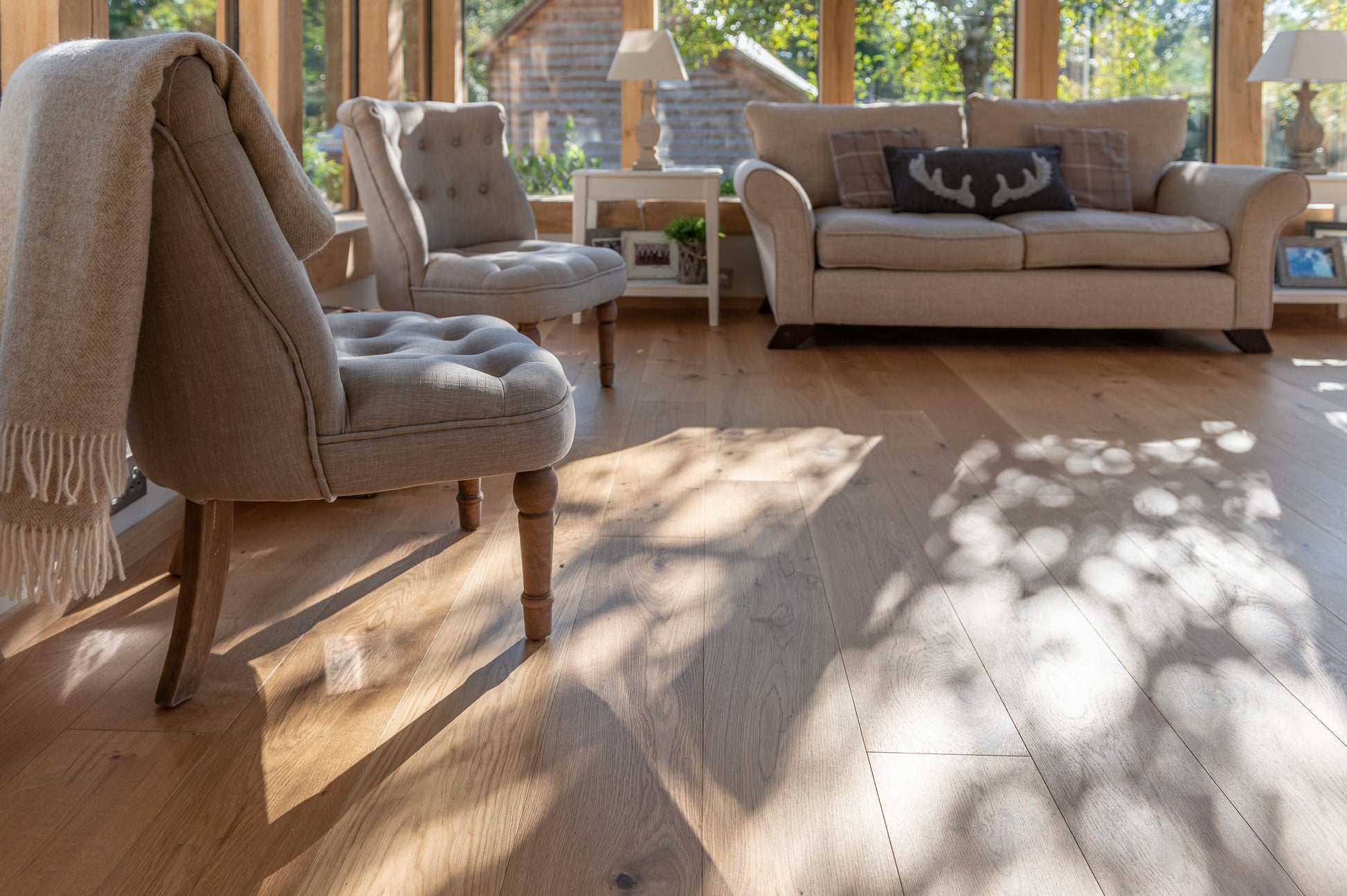 Our Deco Natural Oak planks have a beautiful rustic surface which is simply smooth sanded, buffed and then sealed with clear oils. The resulting aesthetic is a very natural and rustic oak floor, with a rich lustre and subtle natural sheen.