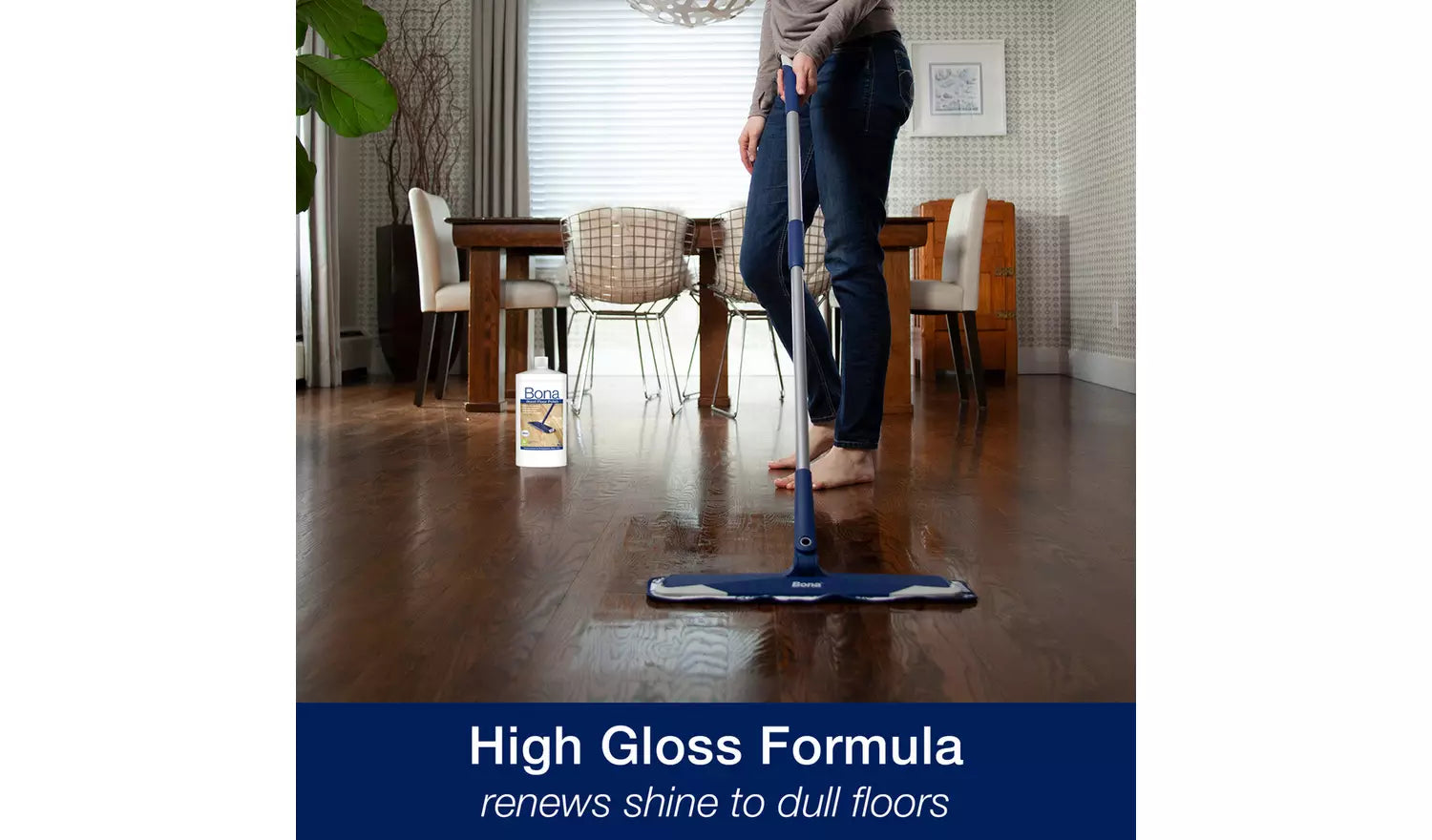 Bona Wood Floor Polish Gloss restores the shine to your wood floors, while offering protection against wear. The durable, urethane acrylic blend adds a high-gloss protective layer and fills in micro-scratches, improving the appearance of your floor. Use every 1-4 months, depending on traffic, to keep your floors revitalised and looking new. Important! Always test floors for adhesion and desired results before use. Safe for all unwaxed, polyurethane finished wood floors. Do not use on waxed or oiled floors.
