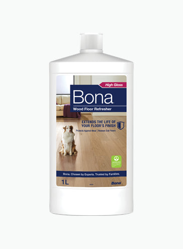 Bona Wood Floor Refresher is a ready-to-use maintenance protection formula for varnished wood floors. It revives scratched and dull surfaces, and offers continued protection against wear.