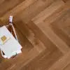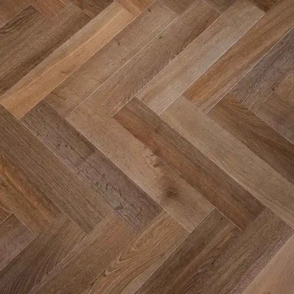 Tundra Thermo Oak XL Herringbone is produced from natural grade European oak, baked in a kiln to darken the wood, creating a base colour that is a rich chestnut brown full of warmth and texture. The larger sized blocks display less rustic blemishing and only occasional small knots, whilst still retaining the characteristic swirls of a natural oak grain pattern.